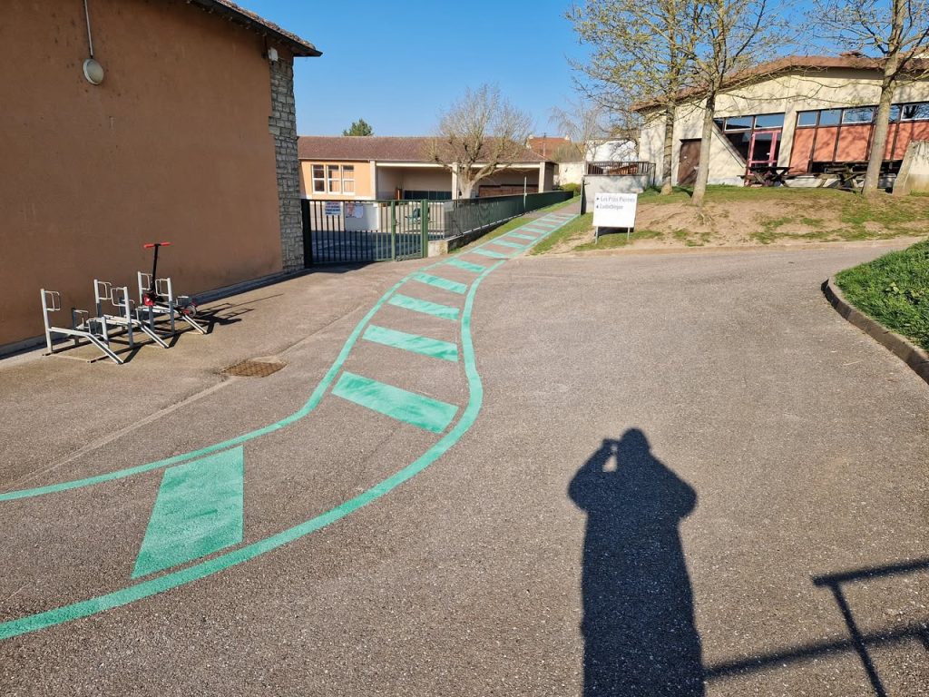 Afin de garantir la sécurité des enfants et la fluidité de leurs déplacements vers la restauration scolaire, un chemin matérialisé au sol a été mis en place.