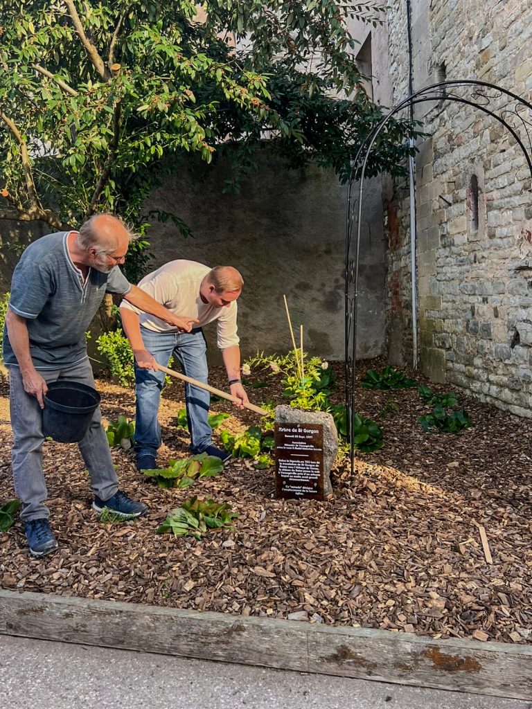 Moment fort de cette édition : la plantation du rosier de Saint Gorgon, réalisée aux côtés de l’association Mémoire de Varangéville, en hommage à la légende fondatrice du prieuré.