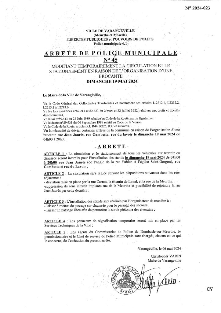 Ce dimanche, les brocanteurs s’installent dans les rues de Varangéville. La circulation et le stationnement de tous les véhicules sur trottoir ou chaussée sont interdits, de 4h à 20h,